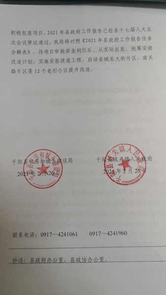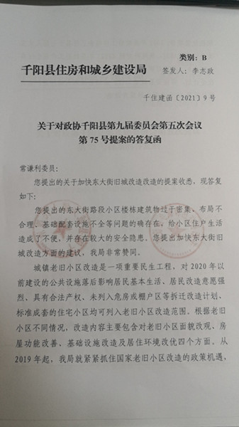 关于对政协千阳县第九届委员会第五次会议第75号提案的答复函