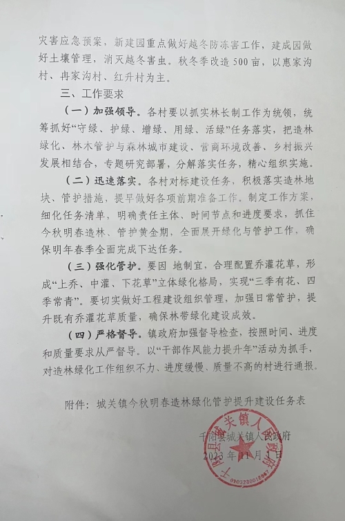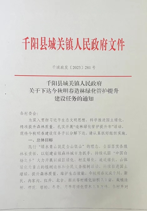 关于下达今秋明春造林绿化管护提升建设任务的通知
