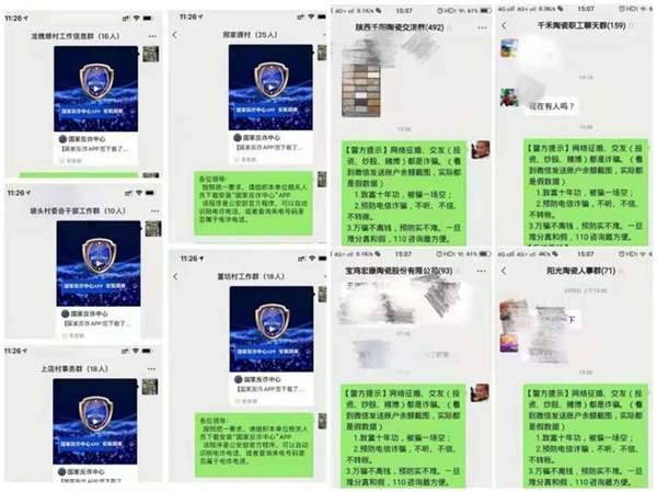 1、建立“一根三枝三叶”反诈宣传群。由县公安局反诈专业队为“根”,联系建立覆盖全县党政机关单位、各镇村及社区、企事业单位的“三枝”微信群,再借助各单位、各部门的“数个枝节”微信群将宣传防范精准送达每个人至每个家庭成员。