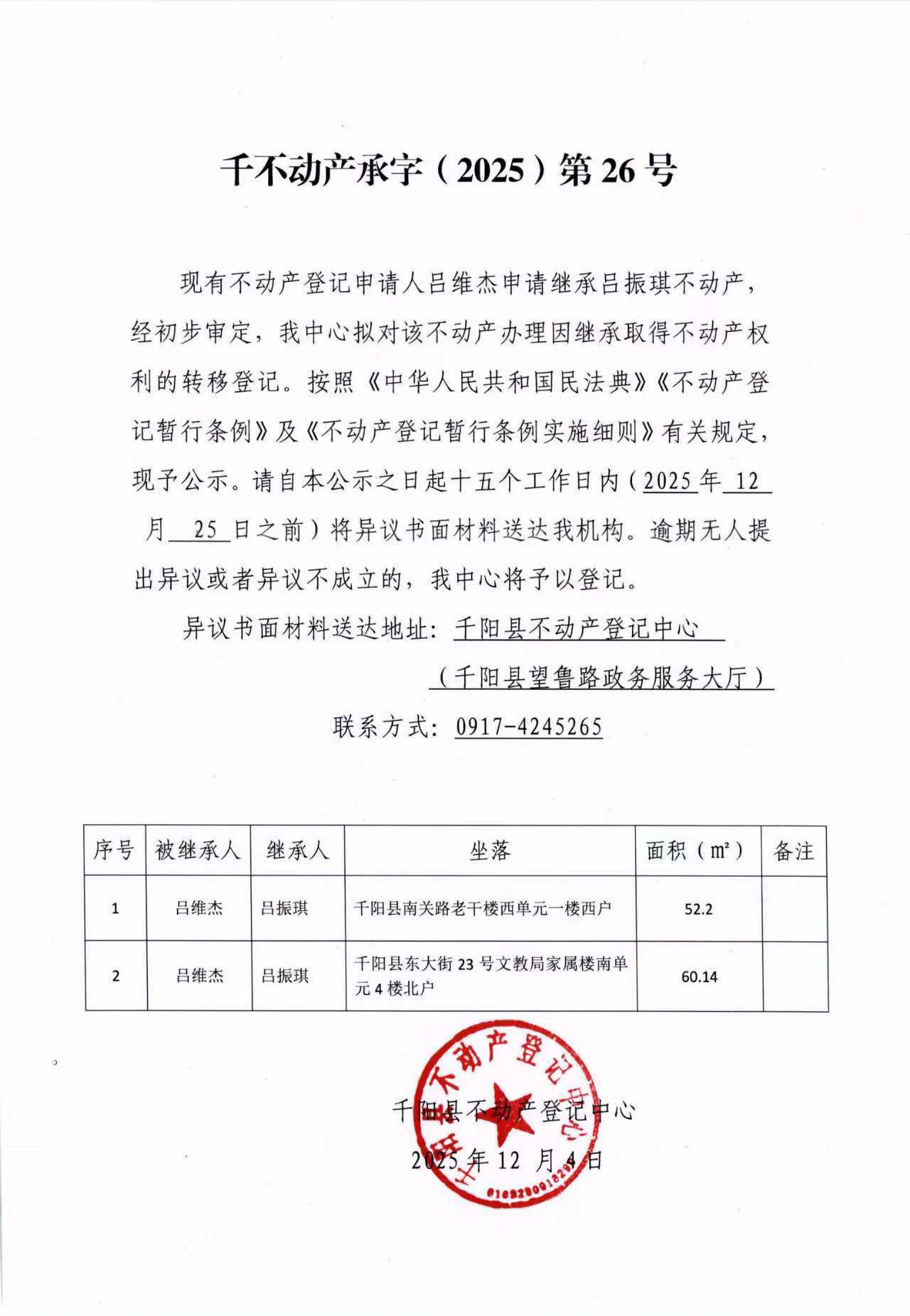 千不动产承字(2025)第26号