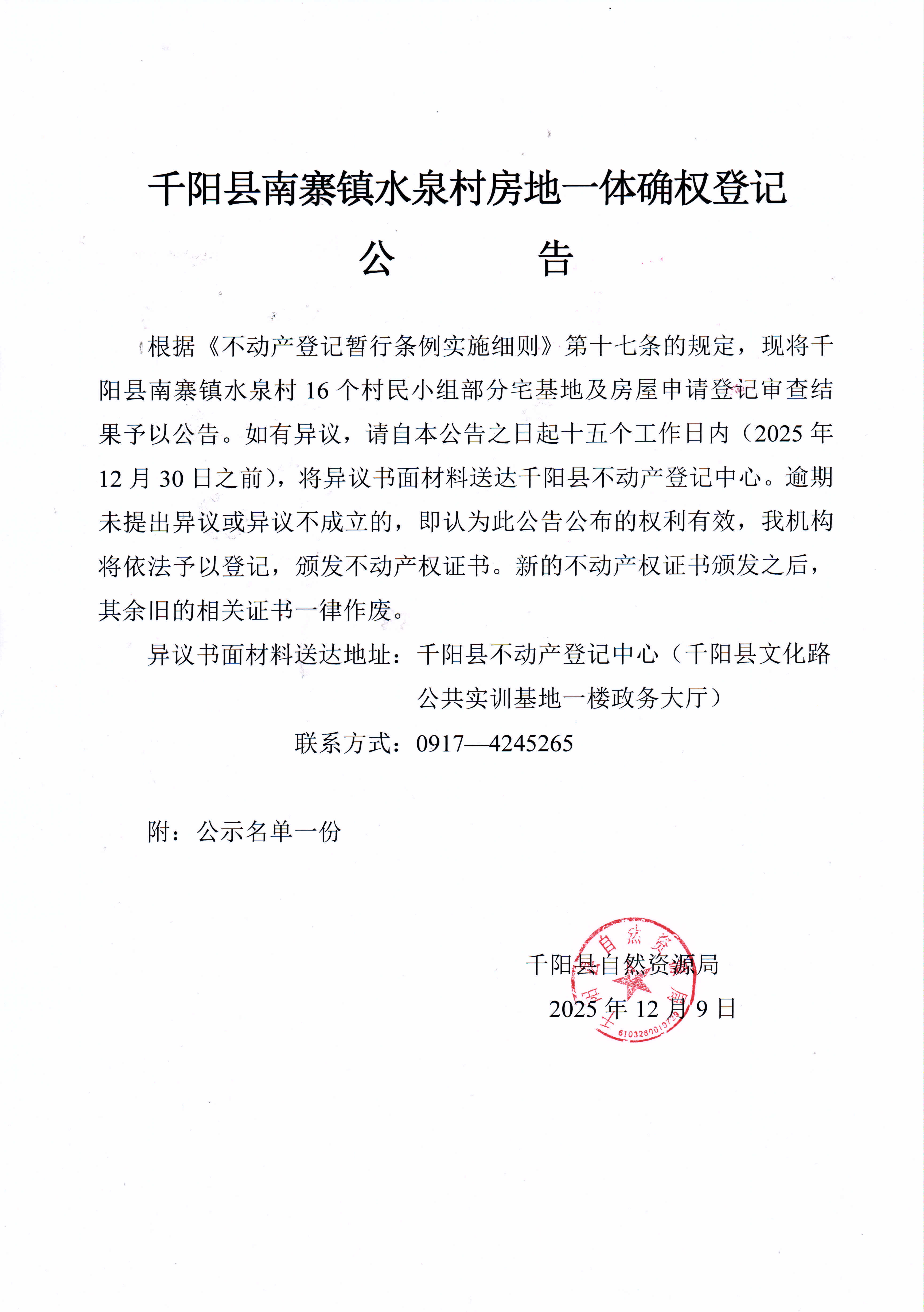 千阳县南寨镇水泉村房地一体确权登记公示名单.pdf