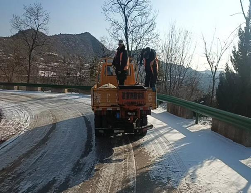 近日来我县遭遇断崖式降温及雨雪灾害天气,公路交通安全面临严峻挑战。为切实做好低温冰冻天气防范应对工作,保障人民群众出行安全,县交通局农村公路发展服务中心迅速反应,精心部署,全力做好雪前、雪中、雪后巡查检查,对崔木--新集川,晁留--新兴、草上路,普社--高崖等山区公路及时开展除雪保畅工作,紧急出动巡查车辆4台次、养护人员30多人,对桥头桥面、急弯陡坡、临沟临崖等路段抛洒融雪剂、防滑沙等累计5.5吨,全力做到“雪中路畅,雪过路清,雪后不滑”,为广大群众和车辆安全出行“保驾保航”。