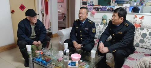 在退休干部杨新民家中,马局长与他促膝交谈,嘘寒问暖,认真具体地了解他的家庭近况及生活困难,介绍了近年来防汛抗旱事业的发展情况,叮嘱他要多注意冬季保暖和日常安全,保重身体,过个安稳幸福年。杨新民表示,感谢局领导的关怀关照,也衷心地为防汛抗旱事业日新月异的变化欢欣鼓舞,新的一年祝愿应急管理局各项工作迈上新台阶、实现新发展、取得新成绩。