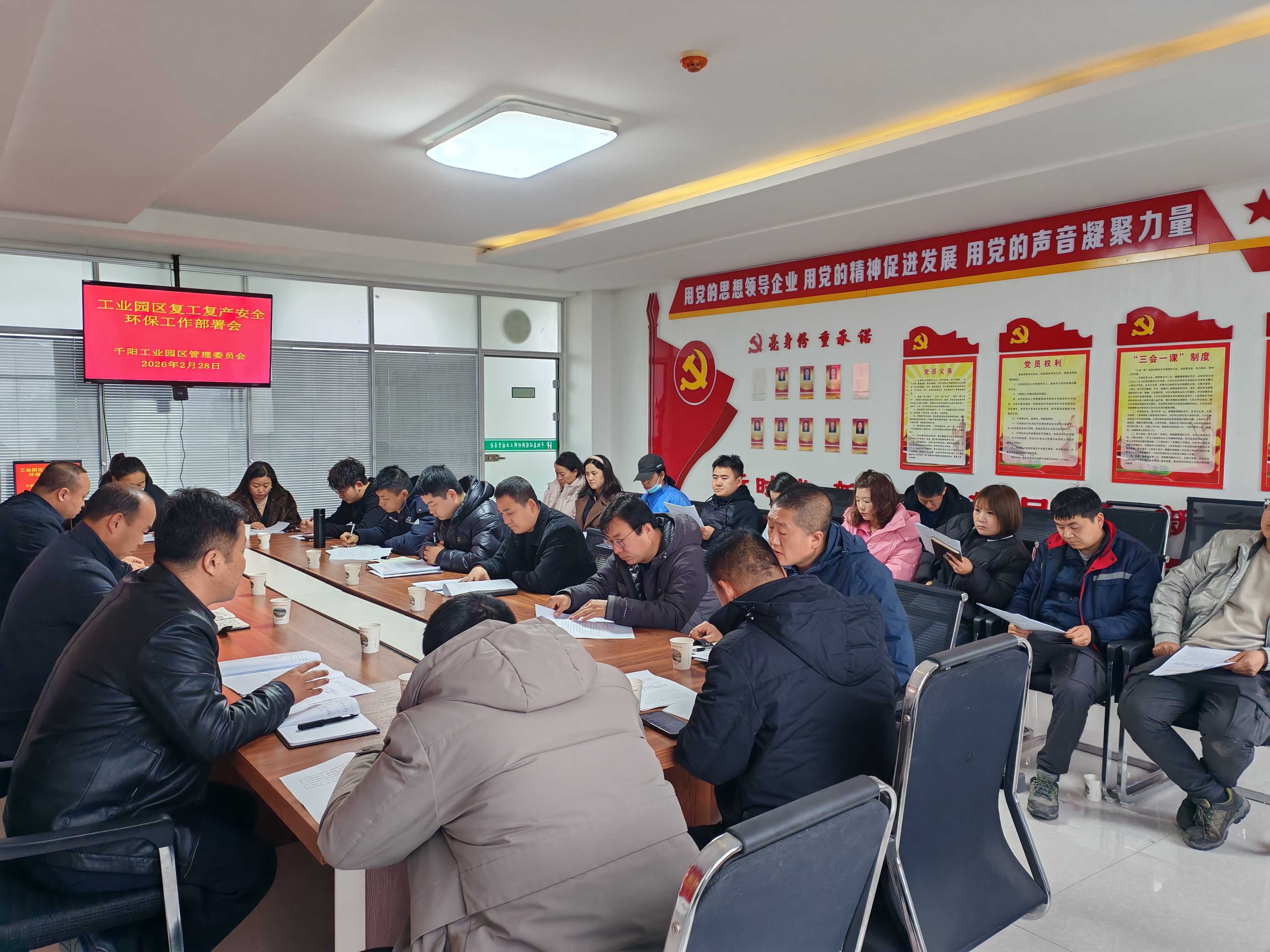 会上,对《2026年度生产经营单位及全县工贸企业安全生产“开工第一课”》相关活动进行了全面解读,并对具体工作进行安排部署。园区党工委副书记、纪工委书记就企业环保管理、自备井用水等重点工作进行了强调。